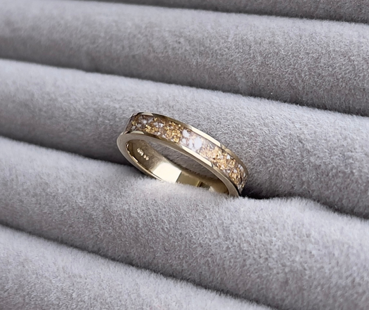 "Recently had a ring made with my late dogs ashes. Always loved the idea of using the ashes into something I can have with me everyday but the thought of shipping part of him across to be handled by someone over a website, if it even would be his ashes, worried me and put me off. So, it's fantastic having someone on island who really shows they care and can communicate with during the process. I absolutely love my new ring, the quality and care is beautifully shown. Thank you again"