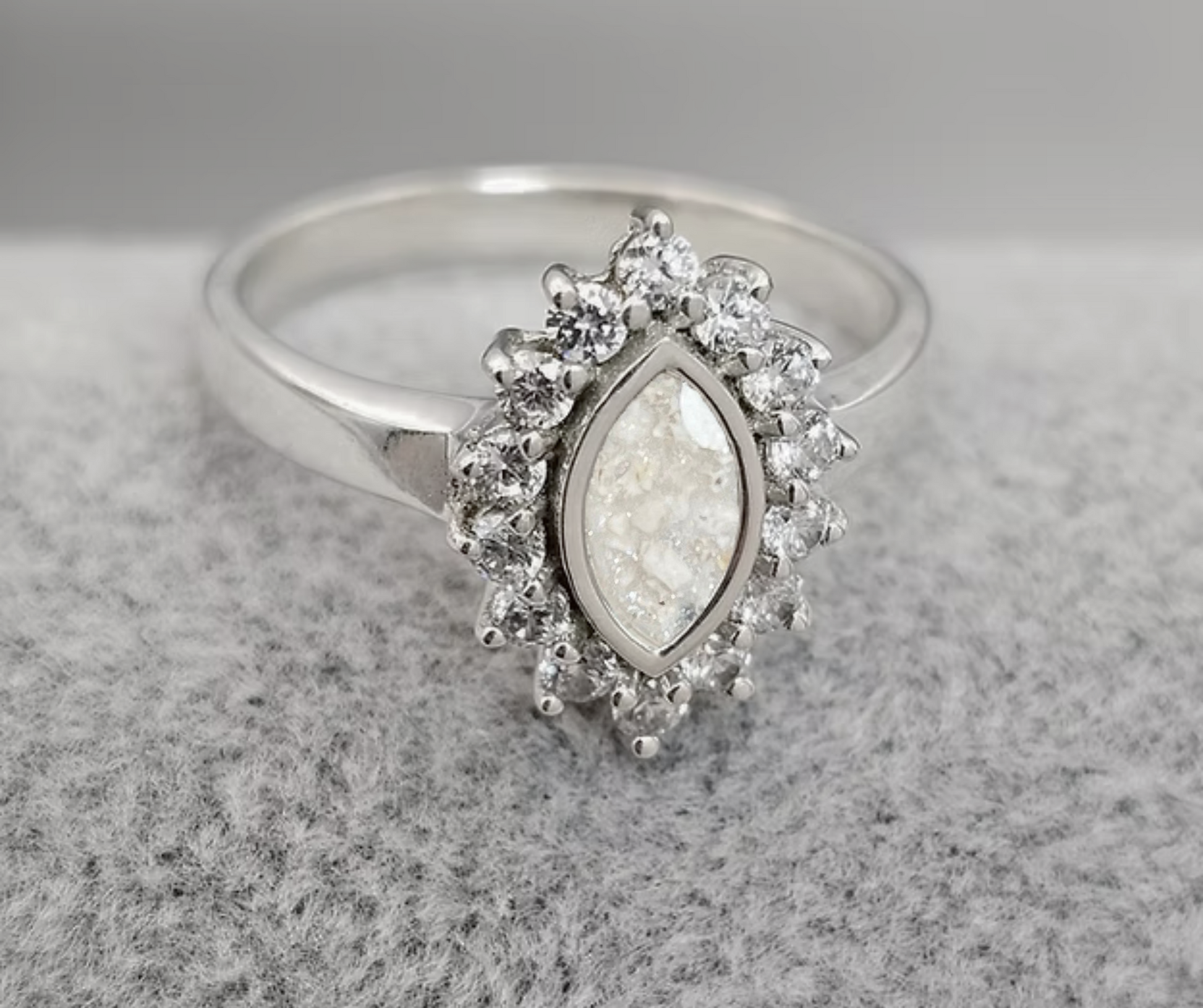 The Princess ring features a large marquise centre stone for your DNA inclusions and a beautiful gem crown.