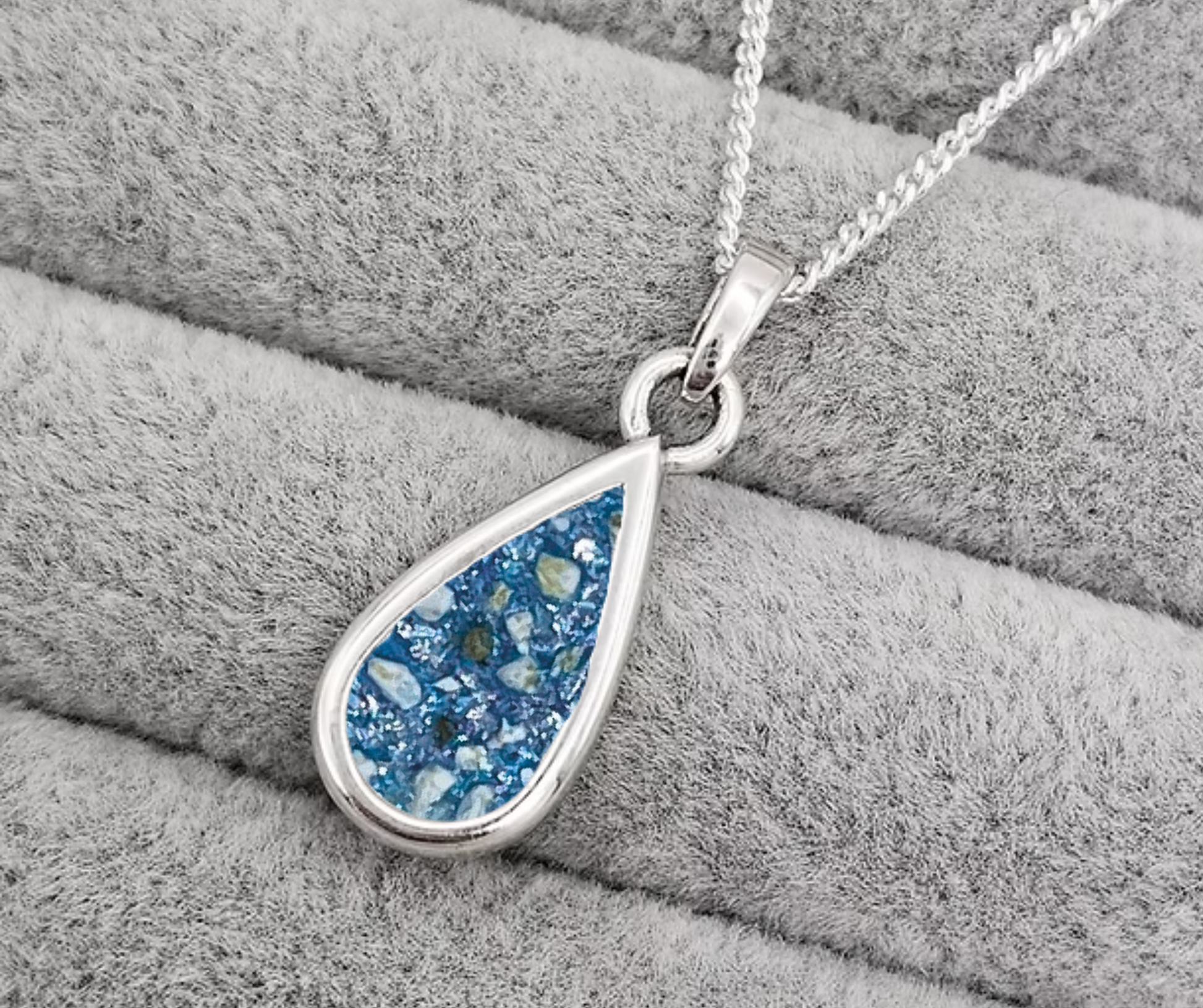 Tear shaped inlay filled with cremation ashes / DNA (sealed in clear resin)